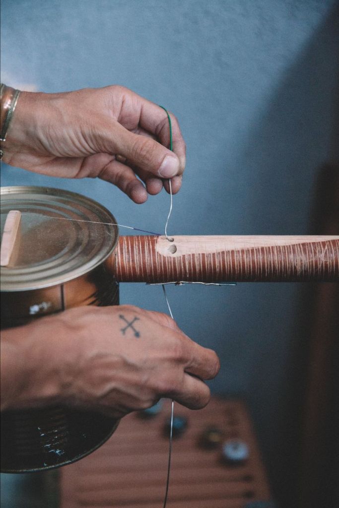 Instruments include the self-named ‘Kearat’, ‘Seer’ or ‘Tomato’ – percussion and stringed instruments have been made from petrol canisters, olive oil containers, tomato cans, steel bowls, bicycle wheels, a BBQ box and a foot pump. These instruments combine with guitars, trumpets, darbuckas, electronic sequencers and Eyal’s distinctive voice, alongside guest singer Julie Francis Fox. Key influences can be heard throughout, such as Omar Souleyman and dabkefolk, as well as Western pop greats.